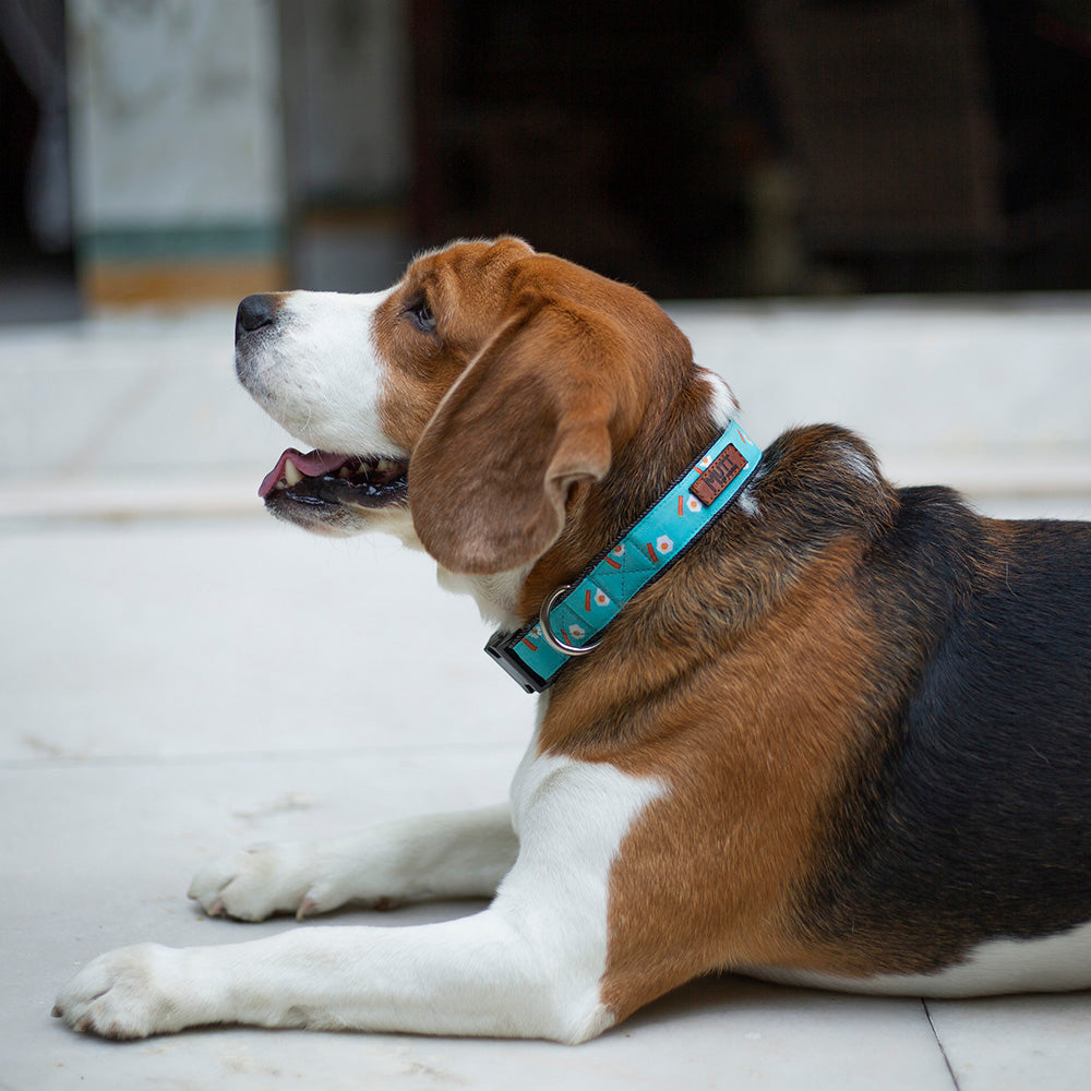 Eggs, Bacon and long walks -- this collar is the perfect mix of all the right things in life. Moreover, we are yet to meet a soul who doesn't like this combination. So if your pet thinks food is life, but walk is important too, get this Collar of Course! All our printed collars and leashes have been designed with a simple yet important thought- comfort and beauty in one piece. Each piece is designed and produced in-house in India using the best workmanship and solid hardware to strengthen its durability.
