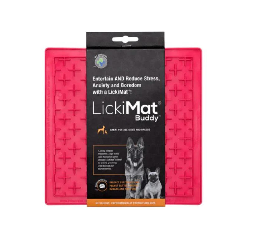 For fun pet interaction, three designs are available. Lickimat Buddy, with its cross maze design, is perfect for thick sticky treats like doggy peanut butter, wet food or soggy biscuits.